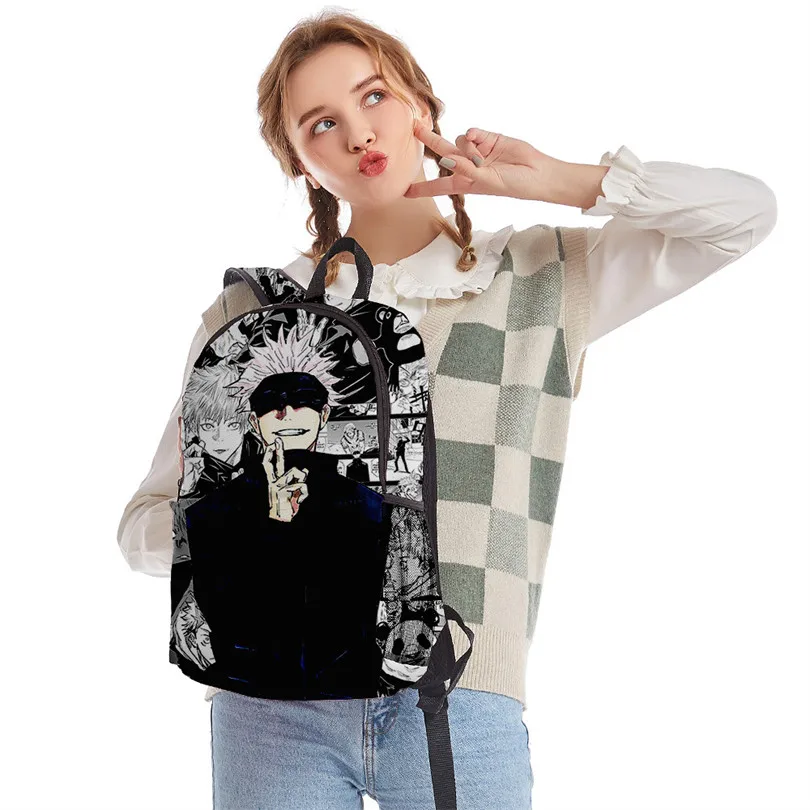 Leve o poder do Seis Olhos (Six Eyes) e do Feiticeiro Jujutsu mais forte com você para a escola, faculdade ou passeios! Esta mochila combina o estilo icônico do Satoru Gojo com a funcionalidade necessária para o dia a dia.