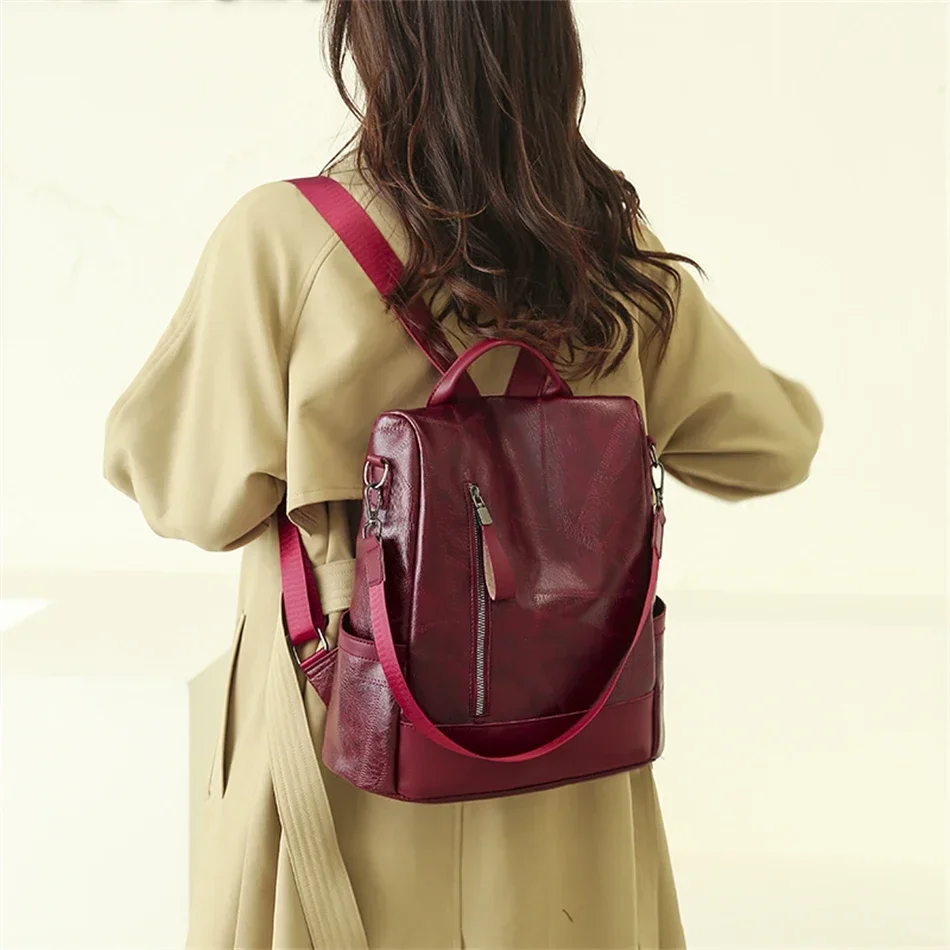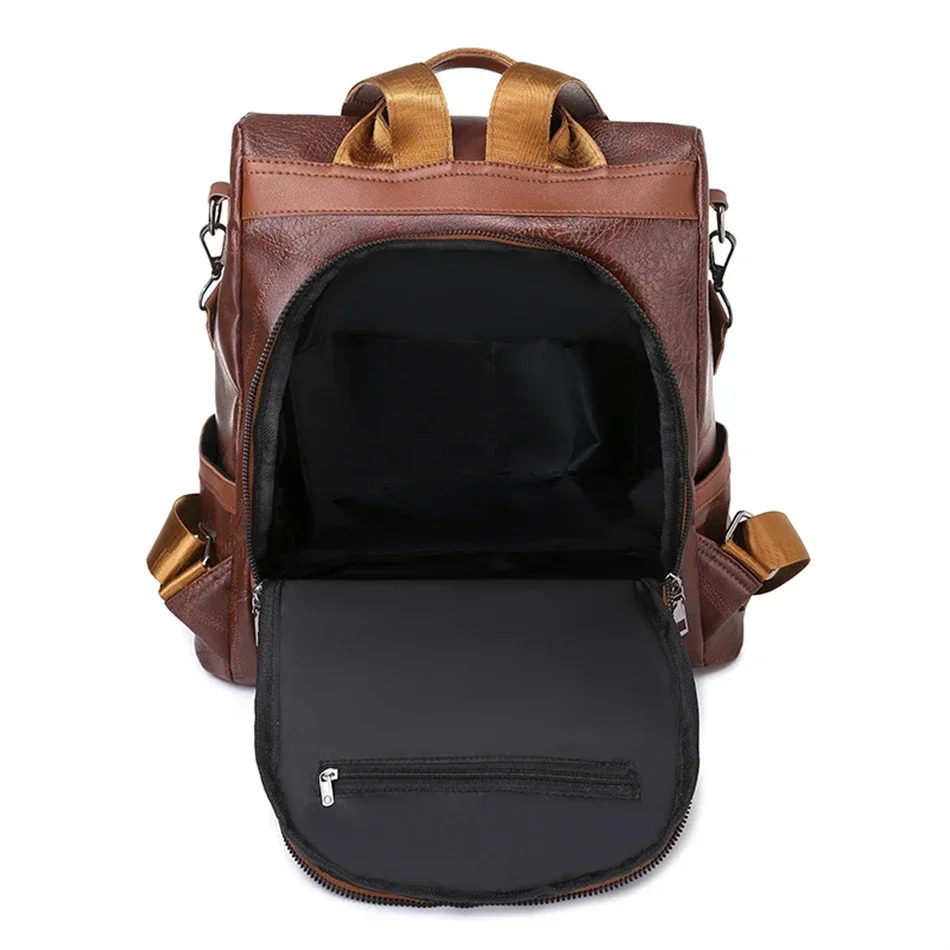 Com acabamento em poliuretano (PU) de alta qualidade, esta mochila oferece o toque macio e a estética luxuosa do couro vintage, mas com a durabilidade necessária para o dia a dia. Seu sistema de alças arqueadas foi projetado para se moldar perfeitamente aos seus ombros, garantindo leveza mesmo após horas de uso.