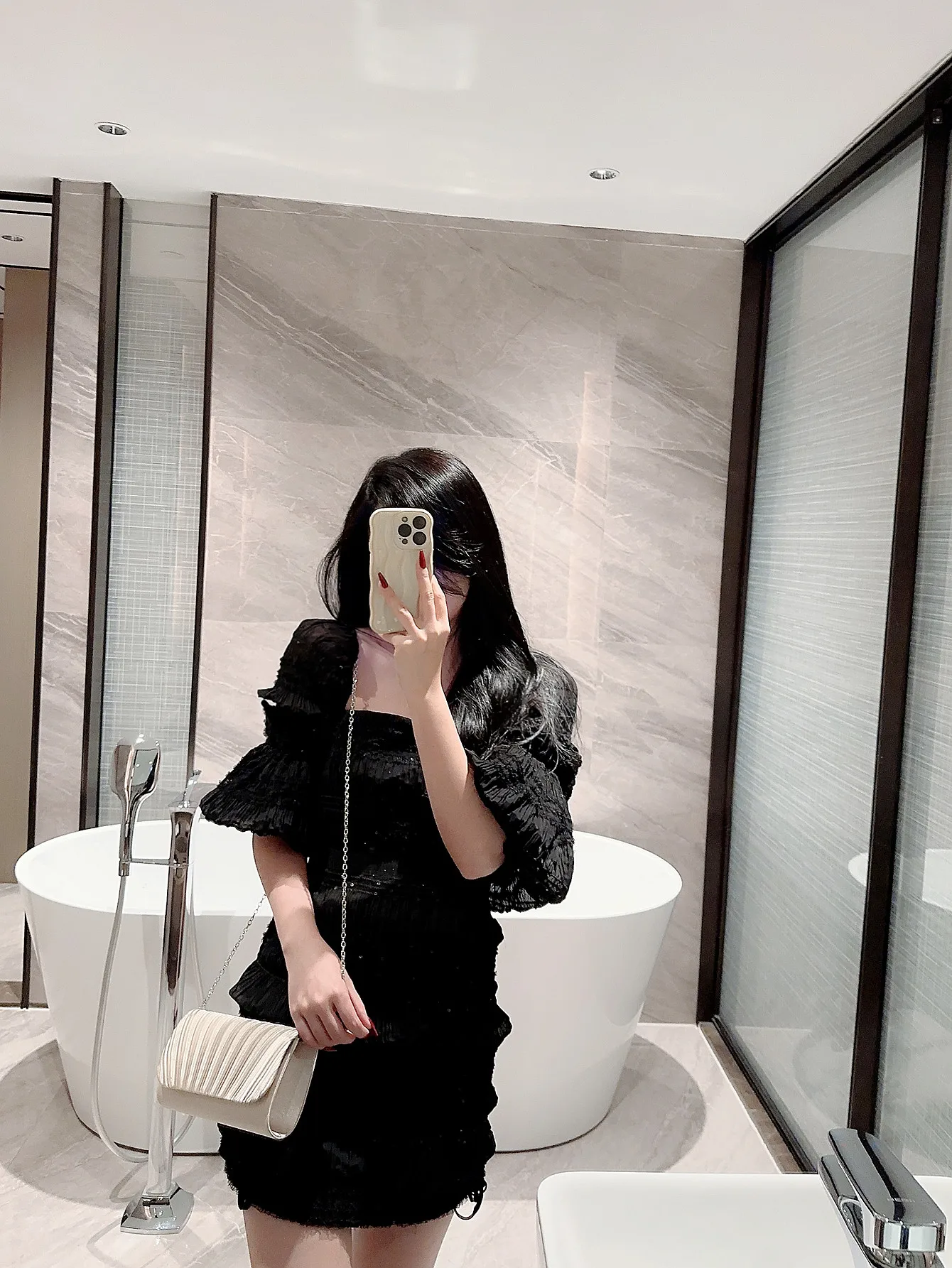 Eleve seu visual noturno com esta clutch elegante, o símbolo perfeito de um estilo refinado e pronto para a celebração.